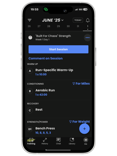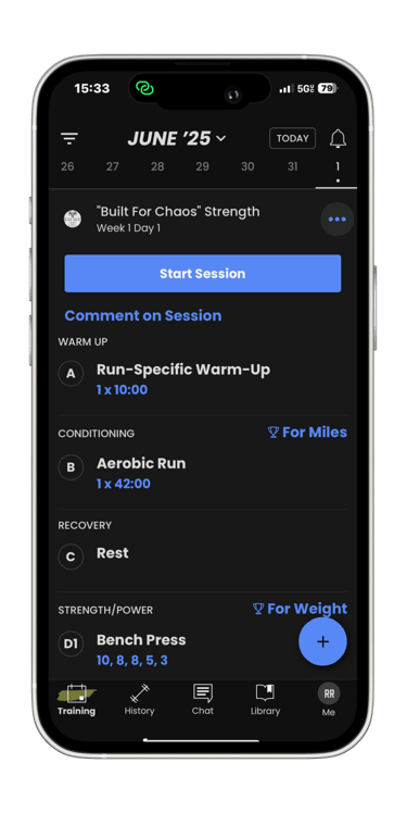 At the end of the phase, you’ll automatically roll into the next, with the team via the TrainHeroic app.
